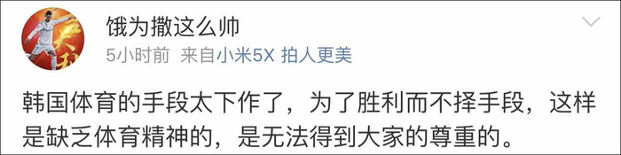 网友:韩国队在体育技能上的水平或许值得学习,但尊重是前提。