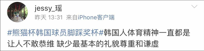 此番“熊猫杯”比赛踩奖杯事件的发生,则让韩国体育的“名声”从赛场内延伸到了场外,以至于接待人员都要站出来吐槽了。