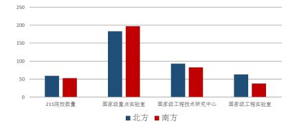 我国南北方部分知识创新要素数量比较