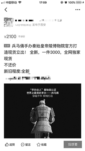 对此,杜明辉回应说:“我们也注意到了网络上的黄牛,正在和相关的网络商城联系,维护正规的销售渠道。未来我们还会不断研发新的文创产品,包括兵马俑手办也可能会再推出新品,以满足大家的需要。”文/本报记者 屈畅 张雅