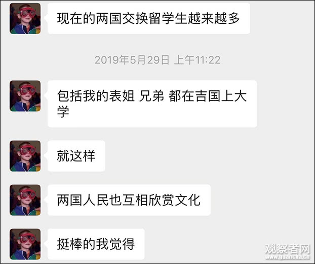 @DezHyKe嗨可儿 告诉观察者网,如今,两国的交换留学生也越来越多,自己的表姐、兄弟现在也都在当地上大学,“挺棒的我觉得”。