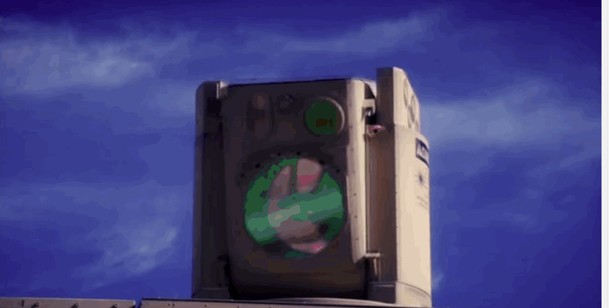 图为雷锡恩HELWS系统转塔视频截图,从外形尺寸上看,与普通光电转塔类似,但中间的大型激光聚焦镜头十分引人瞩目。