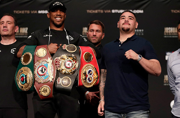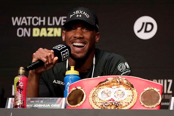 当地时间2019年5月30日,美国纽约,约书亚即将迎战美国重量级新秀小安迪-鲁伊兹,赛前发布会举行。 IC 图