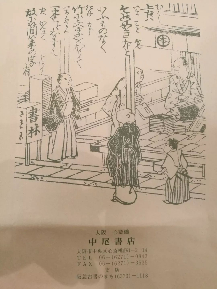 随茶妈到大阪购物天堂心斋桥一带逛,在一家偌大的优衣库隔壁,有一家古本屋中尾书店,娘俩逛优衣库,我请假片刻逛逛中尾书店。这家闹市中的古本店创办于昭和42年(1967),非常高级,有各种浮世绘和日本画家的画,以及各种古本日文线装书。书店不大,但品类很多,看得眼花缭乱,可惜不能久逛,买了一本大阪乡土杂志《上方》。