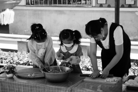 为庆祝六一国际儿童节,当天上午,煤气化第一幼儿园组织了“庆六一·大美中国传统文化”游园活动。小朋友们不仅自排自演了许多歌舞节目,还在爸爸妈妈叔叔阿姨面前展现了自己的手艺,亲手制作了水果拼盘、凉皮、花馍、饺子、果汁等。当与会嘉宾来到面前时,“小厨师”们纷纷端起自己的作品,请大家品尝。“虽然样子不好看,但孩子们能有自己动手的意识和能力,相信他们在家也能成为家长的‘好帮手’。”在尝过饺子后,一位嘉宾赞扬道。