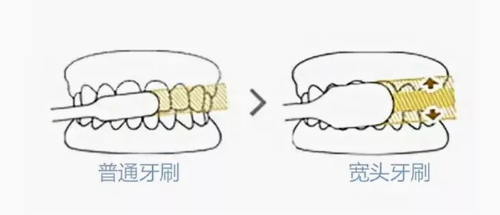 普通的牙刷刷牙,越到里面的牙齿,越是刷不干净,有些牙齿只能一带而过。