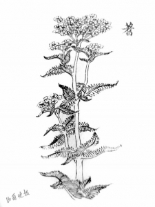 其中,只有蓍草,没有袭人香气,也没有实际功用。北方常见的是高山蓍,菊科蓍属,多年生草本。长什么样呢?跟普通的蒿形态、高低差不多,最具特点的是叶子。从别名锯草、蜈蚣草、羽衣草里,能不能想象出形态?羽状分裂、条状披针形,形象点说,就是打湿后的鸡毛,条索分明。