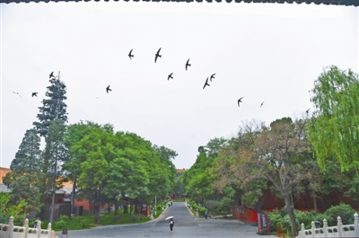自从雨燕返京,每天清晨,翩翩飞舞的雨燕便成为北海公园上空的一景儿
