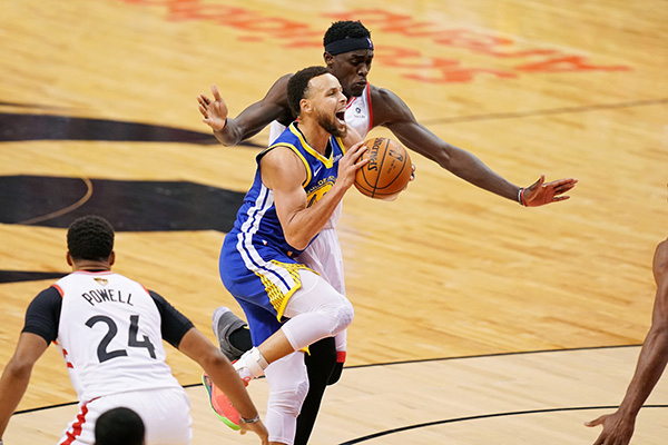 库里拼到脱水、汤普森腿筋受伤退赛、卢尼疑似锁骨扭伤、伊戈达拉受伤返回更衣室又回到球场,在终场前5.9秒飙中关键三分杀死比赛……