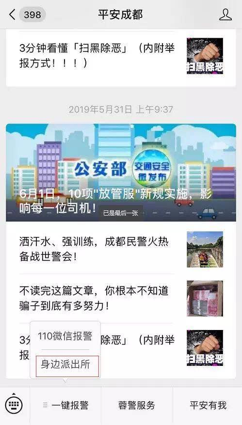 今年1月初,成都市公安局官方微信公众号“平安成都”发布网络一键报警功能,通过点击“平安成都”菜单页面下方的内嵌110报警板块,可以网络一键报警,同时定位群众报警地址,实现派警、出警、处置的全流程跟踪。