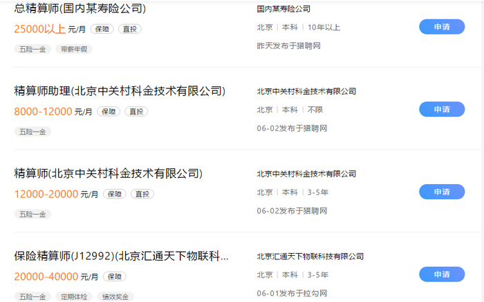 120家公司设总精算岗 65家公司“在线等”