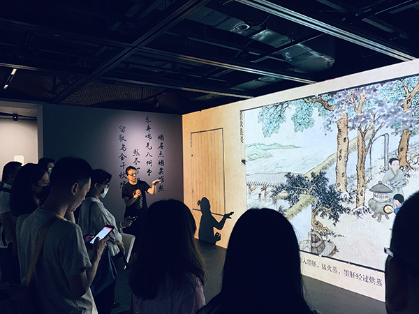 多媒体部分用水墨风格动画还原制墨过程。