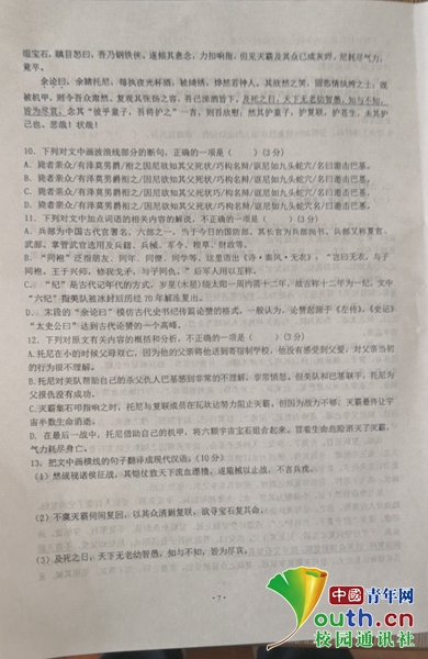 殷积慧告诉澎湃新闻,学校非常鼓励教师在教学中大胆尝试,此次自编古文,已经是第三次编写。此前,他得知一位第一书记为当地百姓谋福利的感人故事,也改编成了古文用作试题。