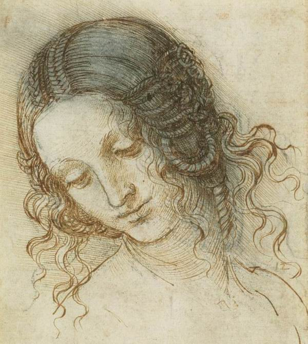 这场关于达·芬奇素描展的每一处都令人惊奇。达·芬奇的素描画曾在英国各种小型的展览中展出,而这次女王画廊的展将两百多幅画作汇聚一堂,跨度之大涵盖了达·芬奇65年的绘画生涯。虽然这些画作自1670年起就被英国皇家收藏,但此次复出它们的光芒仍丝毫不减。任何自认为熟知达·芬奇百科全书式素描系列——古希腊古罗马风格的巨龙抑或带有奇幻色彩的怪诞形象——的艺术爱好者在这次展览前可能都要再三思一番。达·芬奇笔下所描绘的事物大多并不超出我们的认知世界,真正使人惊叹的是他对线条超凡敏锐的研究。 达·芬奇,《勒达的头部》,约1504-1506年