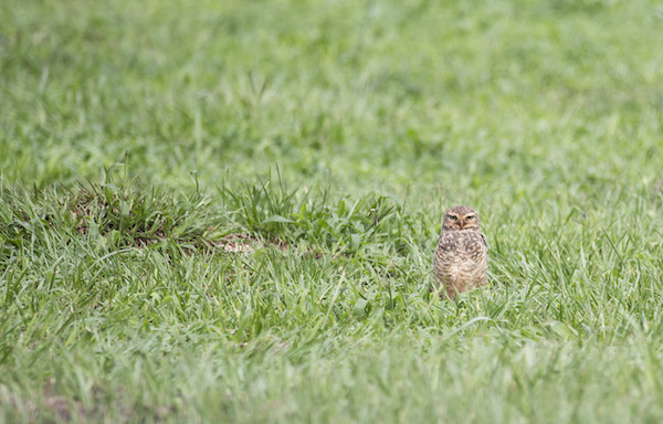 停停走走中,我们先后经过一个叫万达(Wanda)的小镇,一片绵延数百米的马黛茶园和一个红砖的马黛茶加工厂,连人类痕迹更多的这些地方,都不妨碍我们看到鸟。以矿业闻名的万达镇入口,三只穴鸮站在路中央环岛的草坪上,这种身高只有10厘米的家伙是少数白天活动出没的猫头鹰,它们像个球一样体态浑圆,和那些身形巨大体态威武的同类比,它们看起来浑圆可爱。