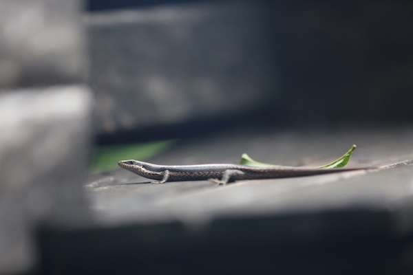我们一边聊,一边缓慢前行。路中央,一只一米多长的蜥蜴摇晃着身子出现,胡里安停下车,耐心等着它走过时,指指右边的湖告诉我说,那个引来的水源部分解决了动物的喝水问题,偶尔会有水鸟来捕食,美洲狮也经常在夜里到那儿喝水。