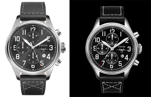 飞亚达FIYTA“歼-20”联名限定款,左为大马士革钢款,右为五级钛款。