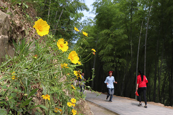 在全军乡分会场,500多名当地干部群众来到国家3A级景区龙津溪地,参与登山健身活动。
