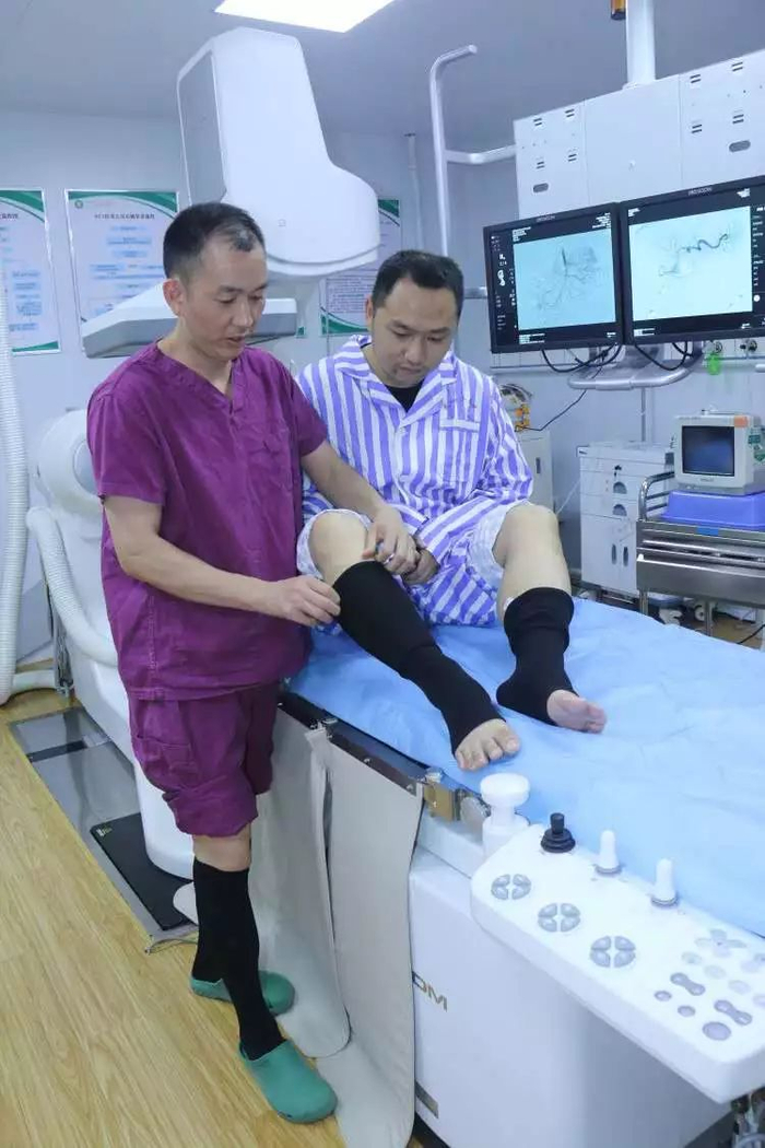 “怎么会,我们主任穿了快一年了,我们科里男医生都在穿,这医用弹力袜是用来预防静脉曲张的。”一旁的周涛副主任医师笑着说道:“我们介入医学科的医生啊,长期穿着三十斤的铅衣做手术,一站就是一天,小腿又酸又胀,甚至会出现毛细血管扩张、网状静脉扩张,也就是下肢静脉曲张的C1期。刚好一年前啊,也有像您一样的老师傅死活不穿,谭主任就带头穿上了丝袜,现身说法,现在介入医学科的所有男医生都加入到了穿丝袜行列。”