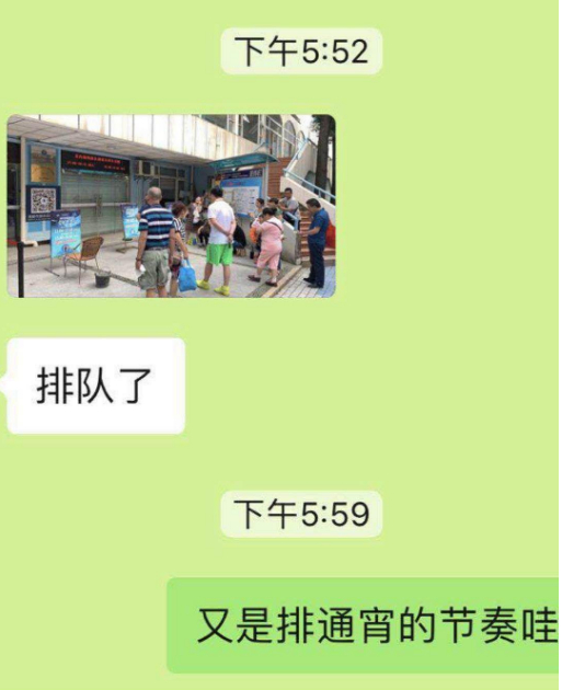 4日傍晚5:52分,韩女士的朋友给她发来微信:“排队了。”照片显示游泳场报名处已经有一些人在排队。第二天早上,韩女士的丈夫6点半赶到了报名现场。他给韩女士发的照片上,看到报名的人已经弯弯曲曲排了很长的队伍。幸运的是,8点过的时候,他报上了心仪场次的名额。