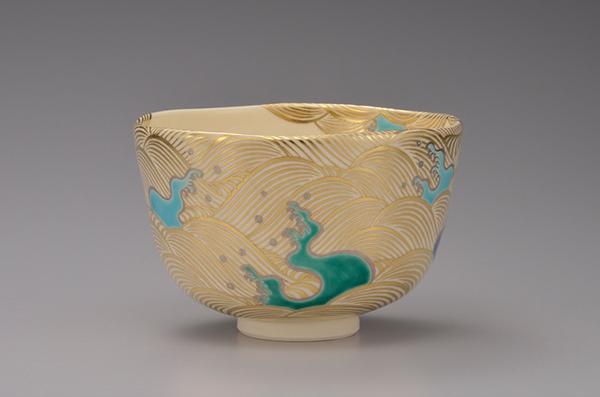 《金彩波茶碗》陶瓷 日本制瓷世家第十七代永乐善五郎作品