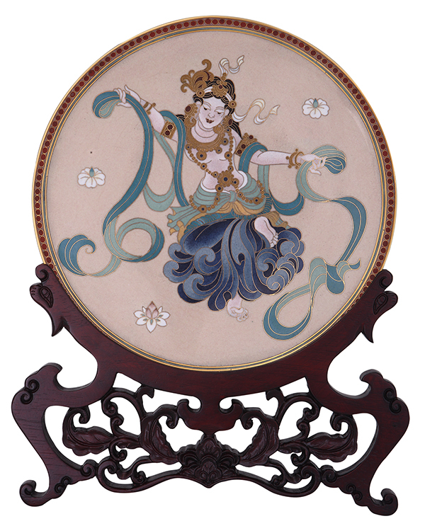 《飞天神女图》圆盘景泰蓝 中国著名工艺美术教育家常沙娜作品