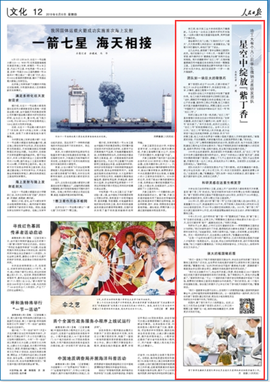 人民日报,紫丁香 《人民日报》报道我校紫丁香学生微纳卫星团队追逐航天强国梦的奋斗故事