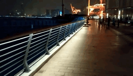 惊险一刻!黄浦江一货船冲撞滨江步道
