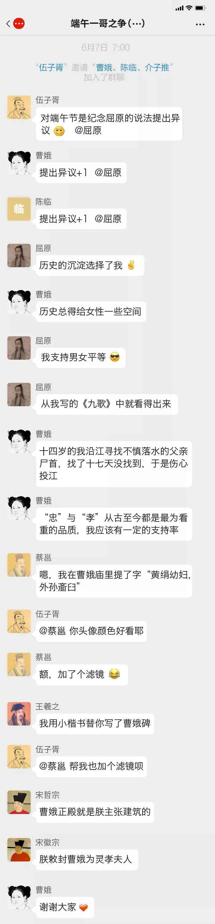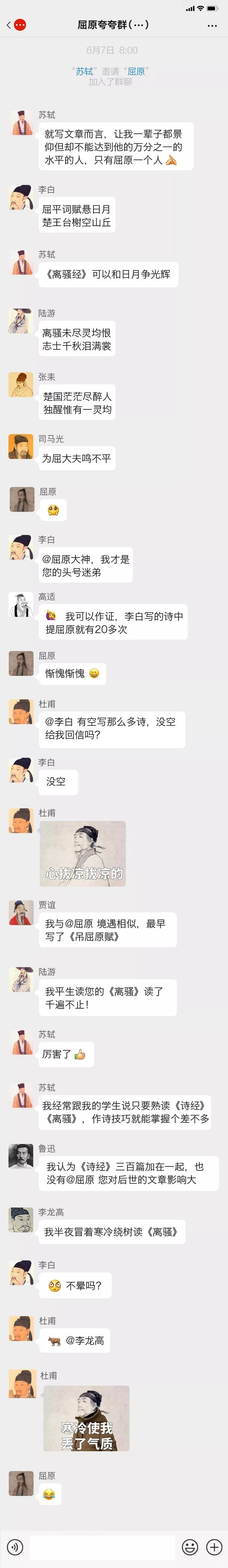 那么问题来了,假如把这些跟端午有关的古人放在一个微信群里,他们会不会为了争“端午一哥”吵起来?