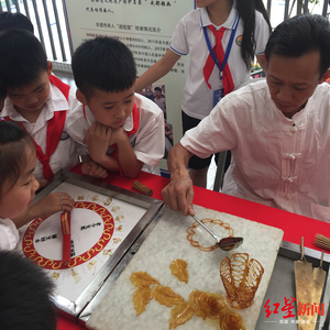 “老师,您好。再给我们展示一下糖画嘛。”