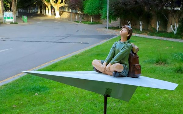 比如,某家美院的毕业展标识装置就像极了正在纽约大都会艺术博物馆屋顶花园展出的阿丽佳·柯维德制作的雕塑。而具体到作品上,一些在展厅看到觉得不错的作品,不久之后就会有微信公号指出与某个艺术家的某件作品类似。