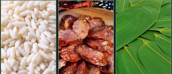 川香肉粽的原料包括:香软糯米、川香腊肠、清香箬叶