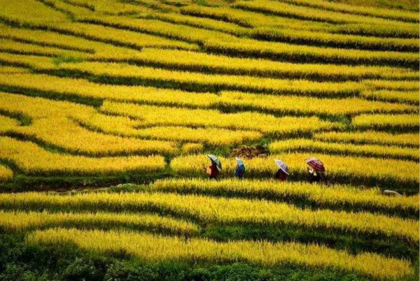 贵州糯稻稻田。黔西南部的贞丰县甚至还在2016年被中国饭店协会授予“中国糯食之乡”的称号。