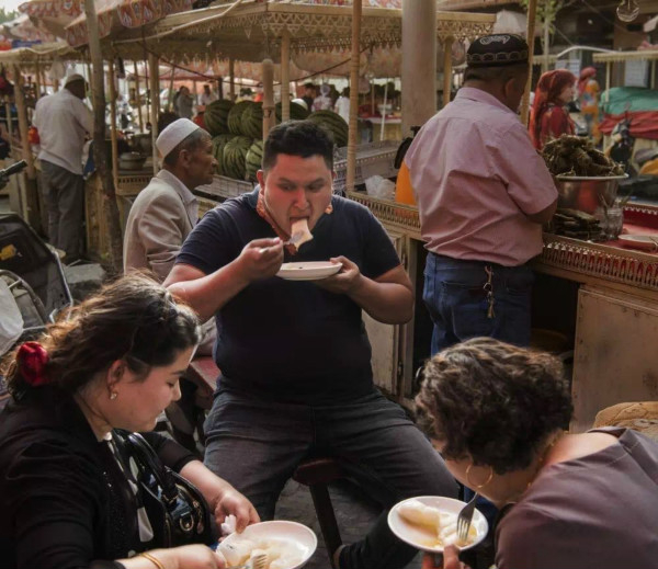 内地的粽子到底何时传入新疆或许仍未可考,但在今日新疆的维吾尔族群众中确实流行着吃粽子,只不过并非端午专供,而是随时都可以食用的小吃。在维吾尔人聚居的新疆喀什的美食集市上,一年四季都可以见到卖粽子的摊位。