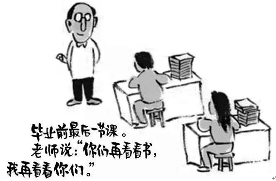从另一个学生的角度,体会漫画中那句话的用意,去想老师“我再看看你们”这句话的份量,作为学生,作为老师辛勤培育的人,又该怎样想、怎样做呢?“自己应该成为怎样的人”“自己应用怎样的人生价值来为老师陪伴、执着奔跑的人生旅程作答”,感念老师的付出,是要静而致远,是要奋而有为,这才是真正的感恩,师生情都化在“无声胜有声”的感动与成长中。田蜜认为,这次的高考作文题,考生如果能从这两个角度去分析和立意,更能得到高分。