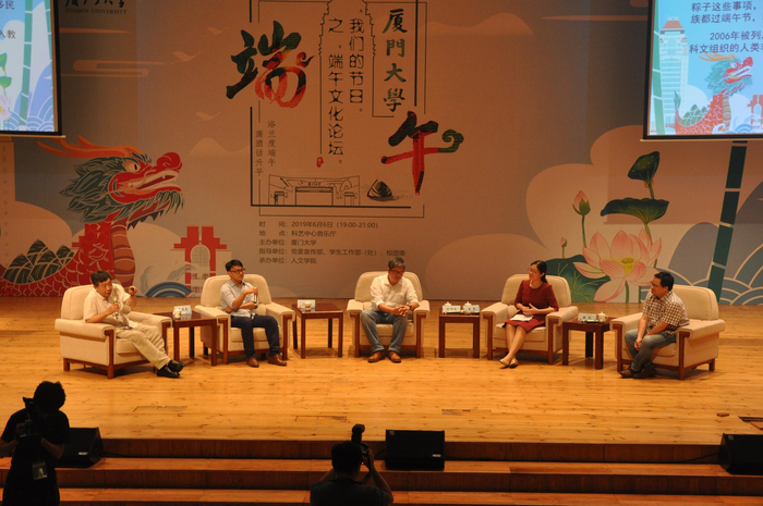 习俗的探讨,思想的交锋,观点的碰撞。6月6日晚,端午文化论坛在科艺中心举行。哲学系教授楼巍、中文系副教授李菁、中文系副教授张惟捷、历史系教授张侃、人类学与民族学系教授石奕龙应邀担任主讲嘉宾,与青年学子一起从文学、历史学、哲学、民俗学、社会学多个角度挖掘端午文化形成过程中凝聚的报国情怀、浩然正气、民族凝聚力及创新精神等基本的、深层的、持久的力量,并且在探讨传统文化精髓的同时,接入当今社会热点话题,引发师生集体思考,共同讨论。