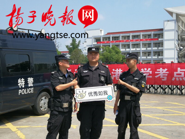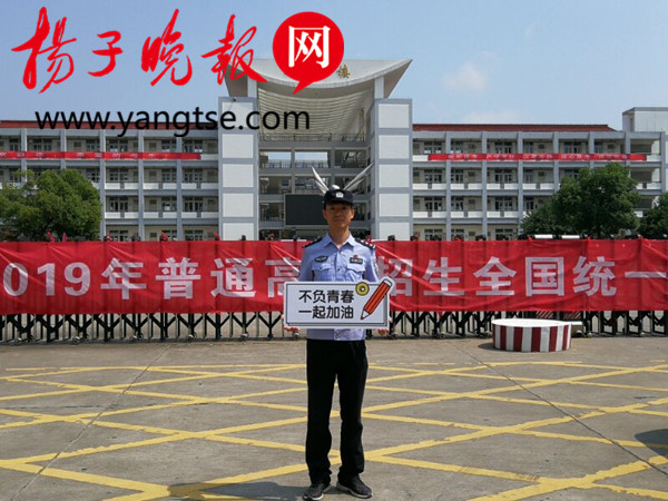 扬子晚报网6月7日讯(通讯员 张进 邓欢 记者 万凌云文/摄)“不负青春,一起加油”“旗开得胜”“金榜题名”……6月7日,高考的第一天,镇江丹徒公安民警,在镇江丹徒大港中学考点,为高考考生举牌送祝福。