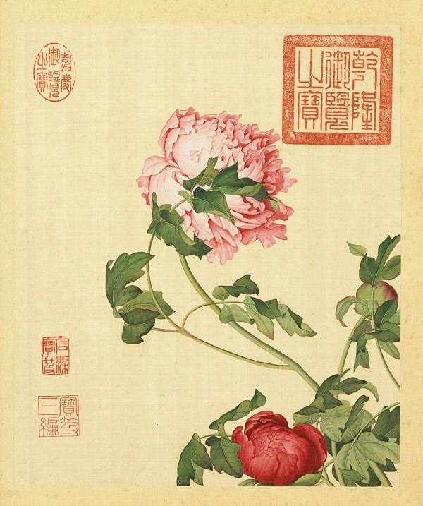 郎世宁《画仙萼长春册》之《牡丹》