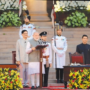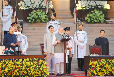 五月三十一日,莫迪宣誓就任印度新政府总理。(新华社发)