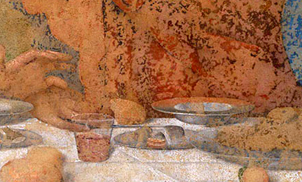 达·芬奇《最后的晚餐》细部:鳗鱼橘子片