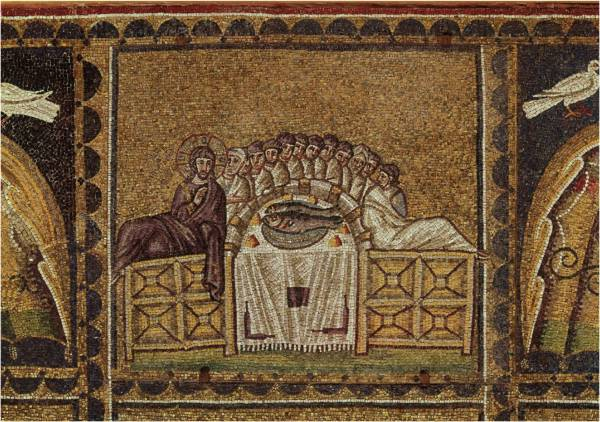 意大利考古学家杰内罗索·乌尔裘里认为,如果根据耶路撒冷当时的饮食习惯推断,最后晚餐的菜单应当是:以苦菜和百里香调味的鱼料理,或是用上当时罗马帝国流行的鱼露(garum),此外还搭配了捣碎的无花果酱,所以说鱼同样具有着象征意义。实际上,在米兰敕令发布之前,基督教是非法的,基督徒们为了躲避罗马帝国的宗教迫害,便取用了希腊语中的词汇“鱼”,也即“ΙΧΘΥΣ”作为彼此间联络的暗号,因为这个“鱼”恰好是由5个词汇的首字母组成:Ι代表ΙΗΣΟΥΣ(耶稣),Χ代表ΧΡΙΣΤΟΣ(基督),Θ代表ΘΕΟΥ(神的),Υ代表ΥΙΟΣ(儿子),Σ代表ΣΩΤΗΡ(救世主),因此也被称为“耶稣鱼”,从某种意义上鱼也代表了耶稣。