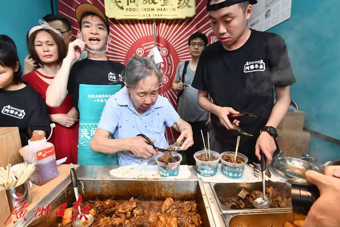 不过,当83岁的陈桂珍无法亲历亲为,“阿婆牛杂”由传承人接手。当没有阿婆经手的“阿婆“牛杂还能广受关注吗,目前并没有答案。6月1日下午,在阿亮的新店排队买到牛杂的一名女食客告诉广州日报全媒体记者,虽然手里拿着牛杂,但是心里非常空荡。她似乎并不接受“没有”了阿婆的阿婆牛杂。