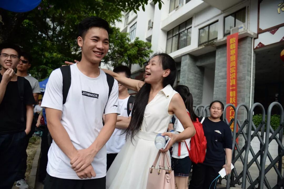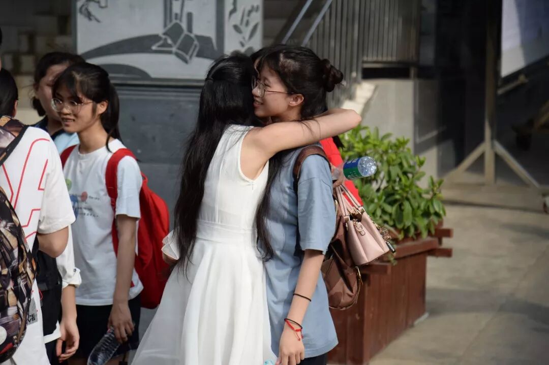 “出来了,出来了。”下午5时,随着人群里发出的激动的声音,第一位出考场的考生神情自若走出了考场。看到自家孩子的身影出现,等候在考场外的家长也激动起来,送上拥抱,或者拍拍孩子的肩膀说“你辛苦了!”吴先生轻轻拥抱了走出考场的女儿,这位硬汉子的眼睛泛起了泪花,他说:“女儿12年寒窗苦读,很不容易,我为她感到自豪!”