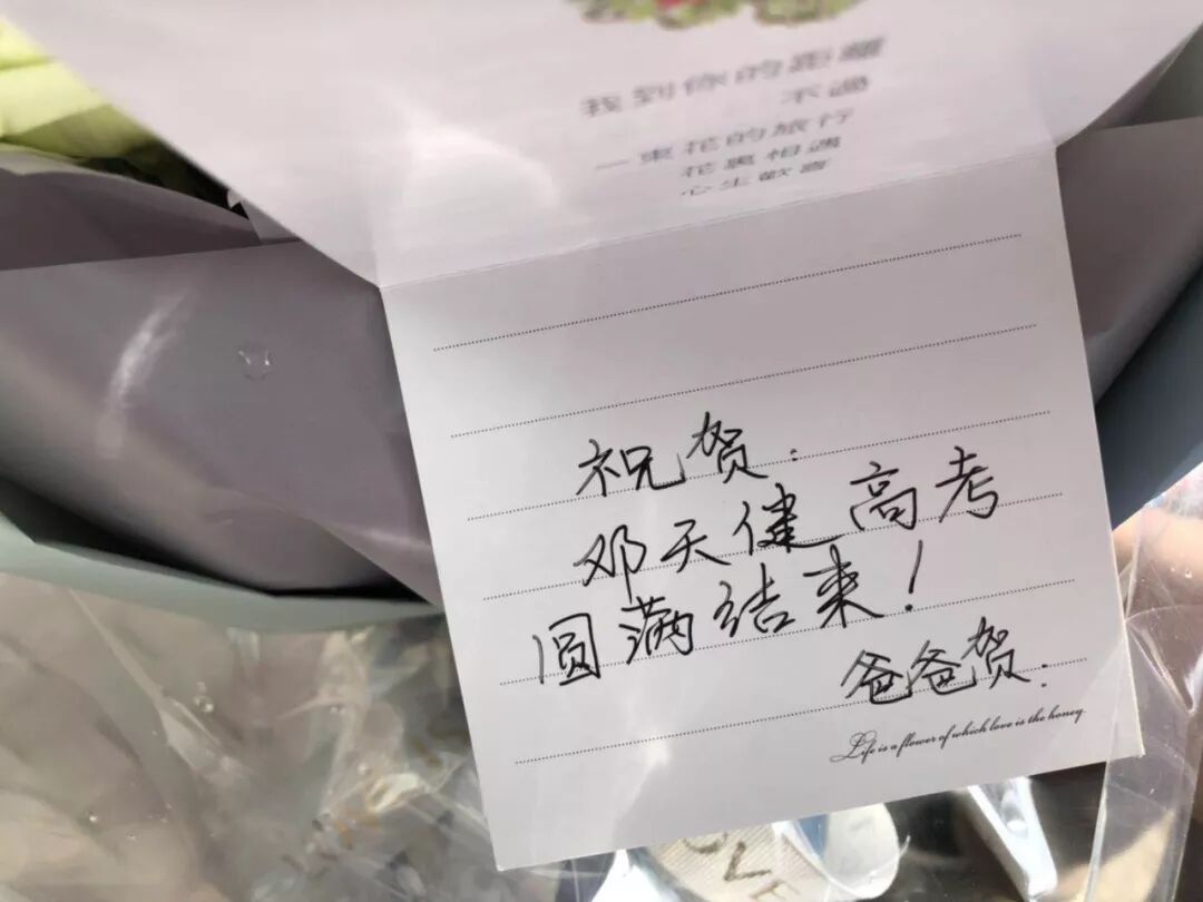 下午4点半,黄女士手里拿着一束向日葵鲜花在考点门口等待她的儿子出考场。“主要是想让他看到鲜花后觉得心情愉快、轻松。”而记者在现场看到,不少母亲最中意的高考礼物就是鲜花,当孩子们走出考场后,手拿着鲜花的孩子们脸上带着感动与微笑,感受着浓浓的母爱!