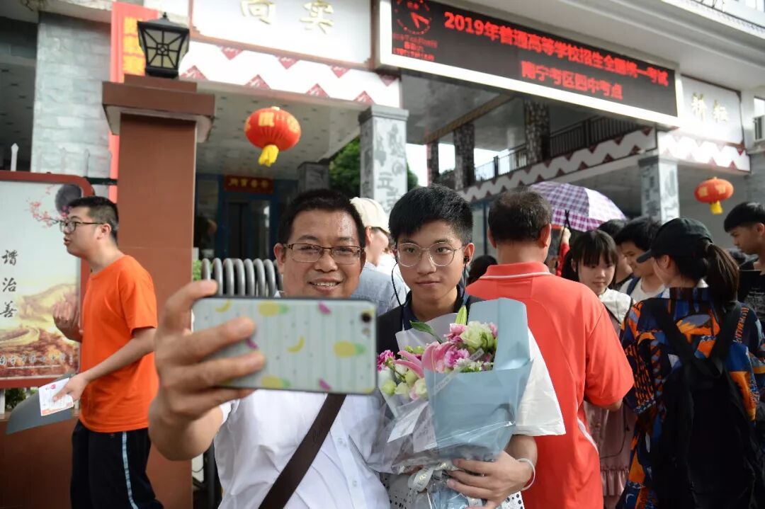 “小美女,你辛苦了!”6月8日下午5时,随着英语考试结束的铃声响起,2019年全国普通高考落幕。记者在南宁沛鸿民族中学考点看到,家长们自发来到考点门口等候孩子,送鲜花,送拥抱,但最多的言语更是朴素的言语:孩子,你辛苦了!
