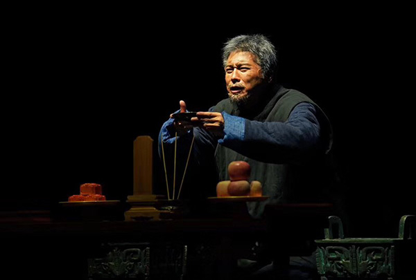 王雷:这是一个大戏,而且特别人艺,就像《茶馆》一样,看一眼就是人艺的戏。首先是特别有京味儿,然后是老北京的感觉,清末到民国,讲的是这段历史期间发生的故事。在大时代冲击下,你能够看到古玩行业里面人的无奈和选择,有坚守的,有变通的,甚至有作假的,古玩行儿里不说“假”,叫“不真”。但当面对外敌入侵的时候,在民族大义面前,这些人又都有股北京人“爷”那劲儿,怎么地吧,就跟丫死磕了。所以演下来,特别带劲。这次独白是编剧和导演新加的,原来的版本有点草草收尾的感觉,隆桂臣这个角色前三幕都在“造假”,到最后了怎么就能舍生取义?他是为了保真(鼎)才造假,我希望能把这个人物时代的悲剧色彩,内心的挣扎给演出来。