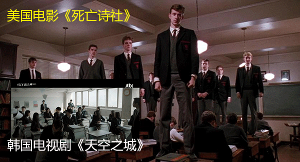 电影中表现了学校家长眼中满怀期望,兴冲冲地将孩子送进学校时的场景。这个场景如今在欧美青春校园题材中已不多见,但对亚洲观众而言并不陌生。今年韩国有线电视台JTBC的跨年爆款韩剧《天空之城》反映的也是这样的学校和这样的家长,《死亡诗社》中尼尔的父母希望自己的孩子将来成为一名医生,《天空之城》中的家长也希望家里的孩子将来成为一名医生。家长把孩子送进学校,不关心他们是否能够通过学习生活获得快乐和人格的成长与完善,他们关心的只是成绩,以及是否能进入名校。只不过《天空之城》表现得更加极端,家长求分求成绩的手段更加激进。