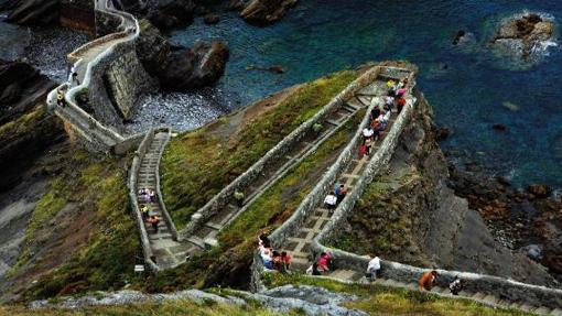 在西班牙巴斯克地区的海岸,有个形状像一座城堡的小岛名为圣胡安·加兹特鲁加兹。在小岛岸边有一座石桥,还有一条共有241级的石头台阶的阶梯。阶梯尽头还有意外惊喜,一座造型精巧的寺庙在那里等待着游客的到来。