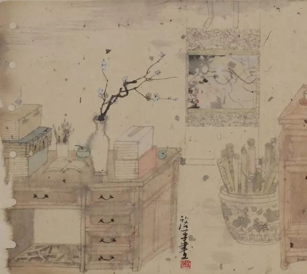 “有间书房”这主题非常有意思。“有间书房”是多么的奢侈,在书房里首先有自己喜欢的书,有自己喜欢把玩的古砚、笔、墨、石头、各类古董小摆设,一个属于自己的天地。躲入书房翻阅自己掏来的各类旧书,把玩眼前的小古董,我觉得这其实又是现代人应有的关注。尤其是爱美术,读过一点点书的人,受过一定教育的人,在现实生活中一边喜欢现代追赶着当代,一边是回过头去钻入自己的书房,欣赏着古董畅想于传统,就像一个人往返于回家的途中,在不断地寻找自己“丢失的钥匙”,我好像如此。作为画画的人来讲,这种尚古的现代主义我很喜欢,至少我是这样想的。