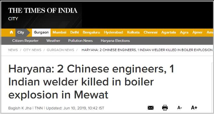 原标题:印度一药企锅炉爆炸 2名中国工程师死亡